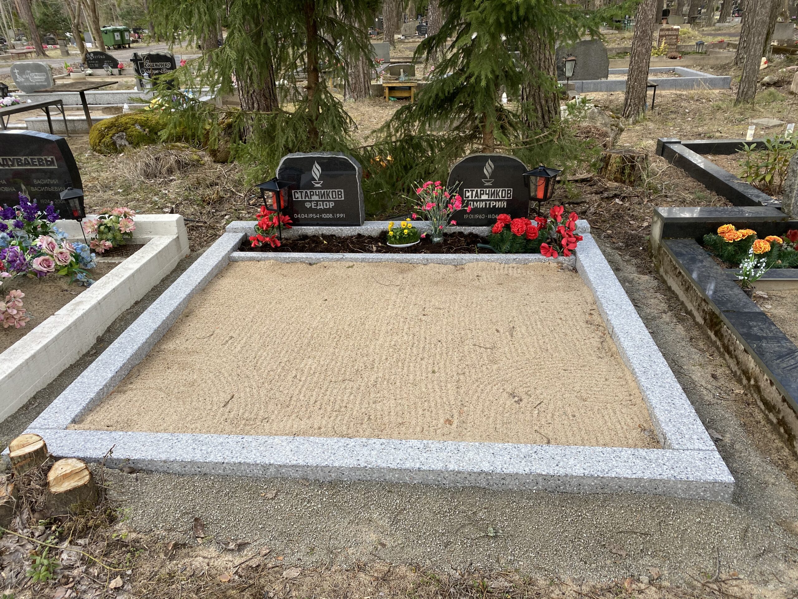 We offer a variety of design options, including decorative elements (balls, posts, carvings), so that you can create a worthy design for the place of memory of your loved one. Sand and soil are already included in the price.